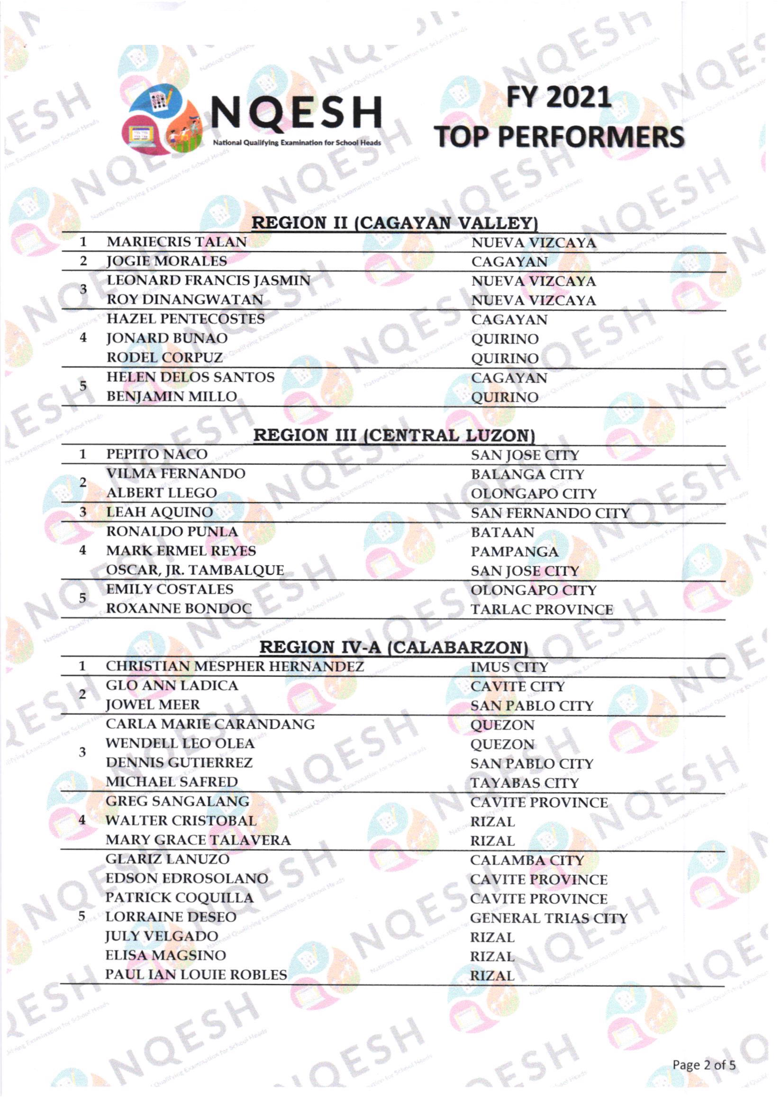 Enclosure No. 1 NQESH FY 2021 National and Regional Top Performers,