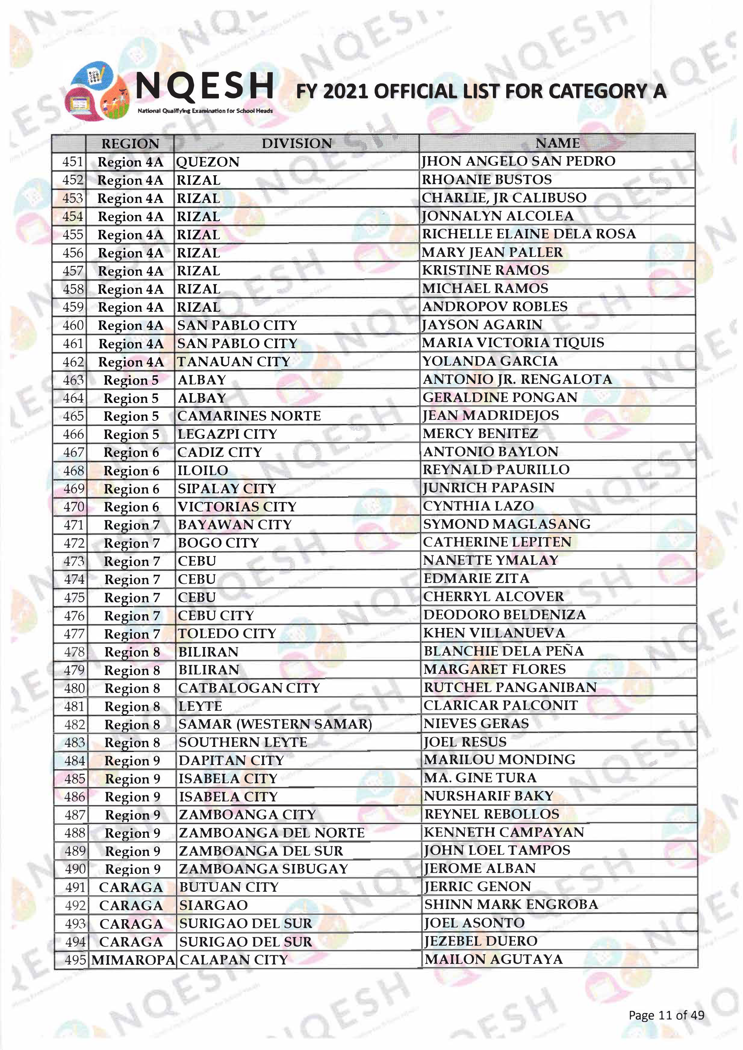 Category B | 2,096 (35.10%) | MAY TAKE the next NQESH in 2023 after the provision of coaching/outstanding Principal. They shall be prioritized to be designated as Officer-in-Charge/Teacher-in-Charge in case of deficiency of eligible Principal I applicants. |