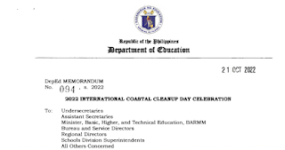 DepEd Memorandum No. 094, s. 2022 2022 International Coastal Cleanup Day Celebration 21 OCT 2022 DepEd…